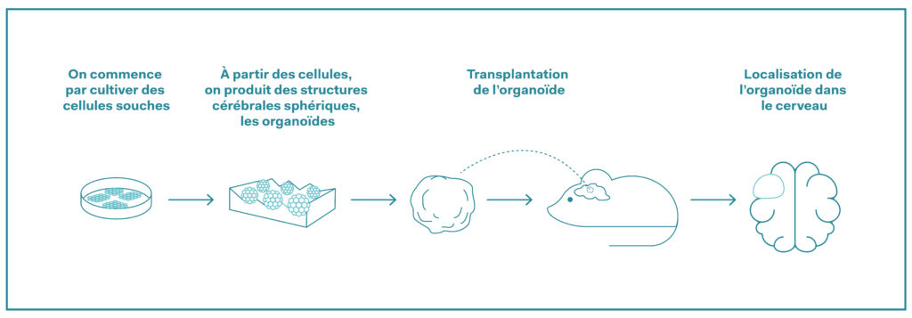 Avant qu’un traitement puisse être autorisé pour l’être humain, il faut prouver qu’il est sûr et efficace. Pour cela, il est actuellement encore indispensable de faire des tests dans des organismes vivants. C’est pourquoi les scientifiques ont transplanté les organoïdes humains à des rats nouveau-nés avant de leur administrer le nouveau traitement. Les résultats furent prometteurs: les mêmes effets positifs se manifestèrent que sur les organoïdes. Les expériences sur animaux avaient deux objectifs principaux: premièrement, observer le comportement des cellules cérébrales humaines dans un cerveau vivant et deuxièmement, savoir si le traitement agit également dans un organisme complexe et est bien toléré.